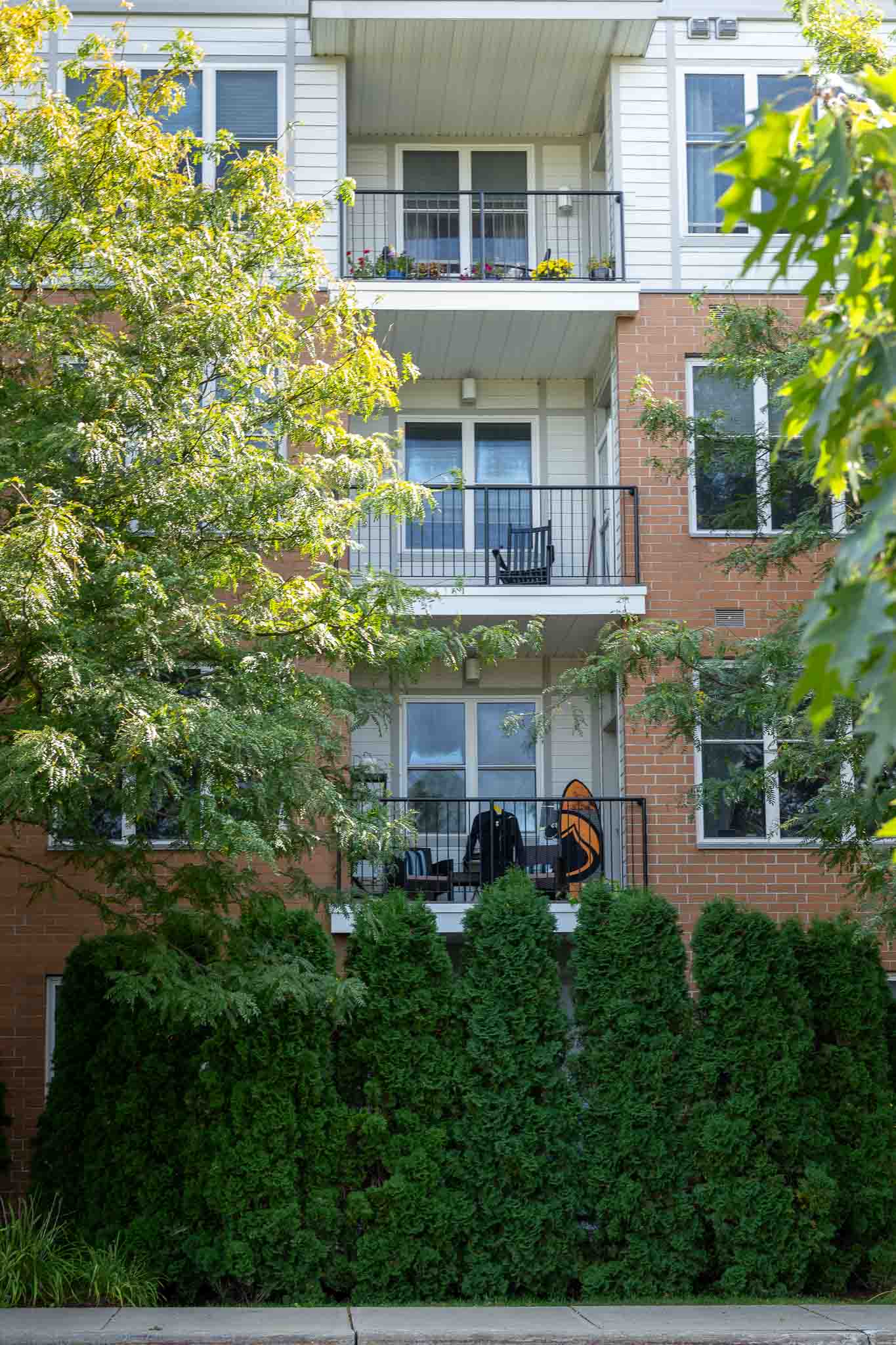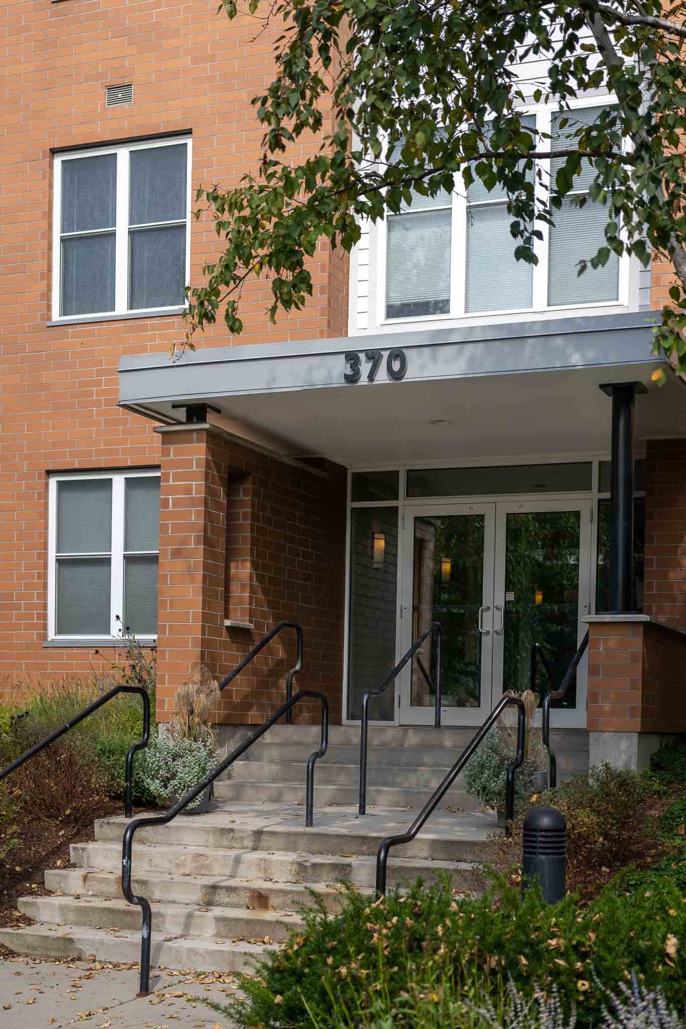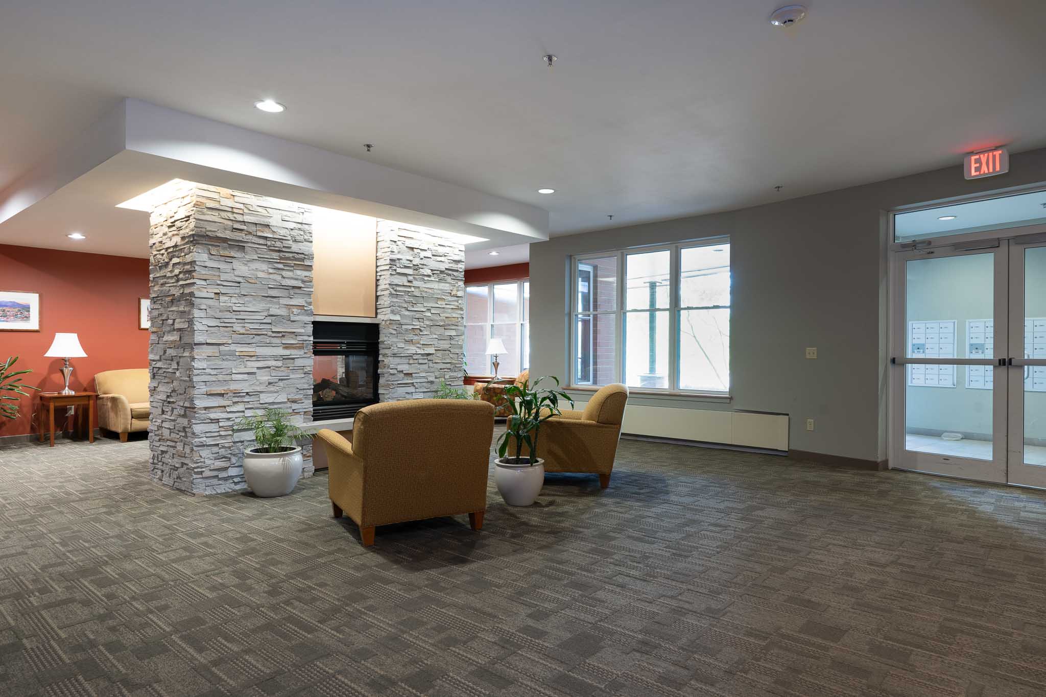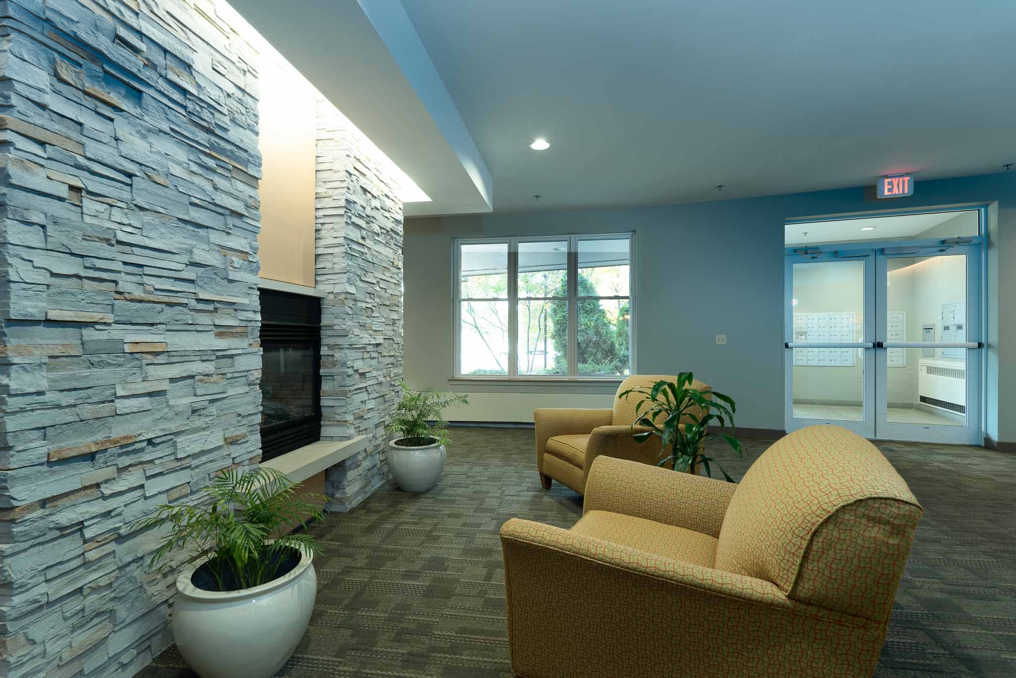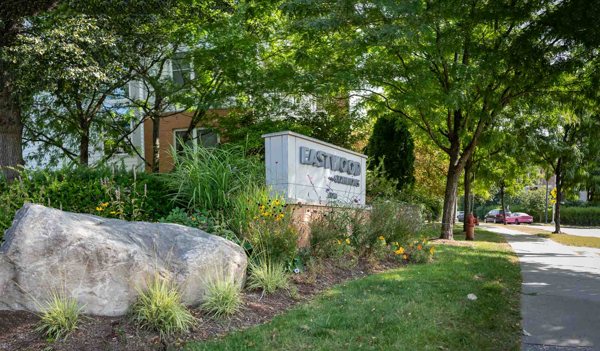 Eastwood Commons was completed in 2005 by Wright & Morrisey according to the architectural guidance of Lemay & Youkel Architects. The 89 individual condos feature both 1, 2, and 3 bedroom unit layouts. The building is equipped with a spacious entrance lounge and fireplace seating area with elevator access that connects the assigned parking spaces and individual locked storage units of the underground garage to 4 floors of condos. Many condos includes balcony access with a range of different views that include expansive south and west options or a more private view facing the lush, landscaped courtyard towards the north and east.