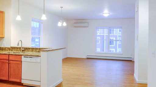 Inside, you’ll find 9-foot ceilings, hard-surface flooring, granite countertops, and soft-close cabinetry, paired with matching modern appliances including a dishwasher and built-in microwave. Energy-efficient heat pumps provide both heating and air conditioning, giving residents full control year-round. A washer and dryer are included in-unit for added convenience.