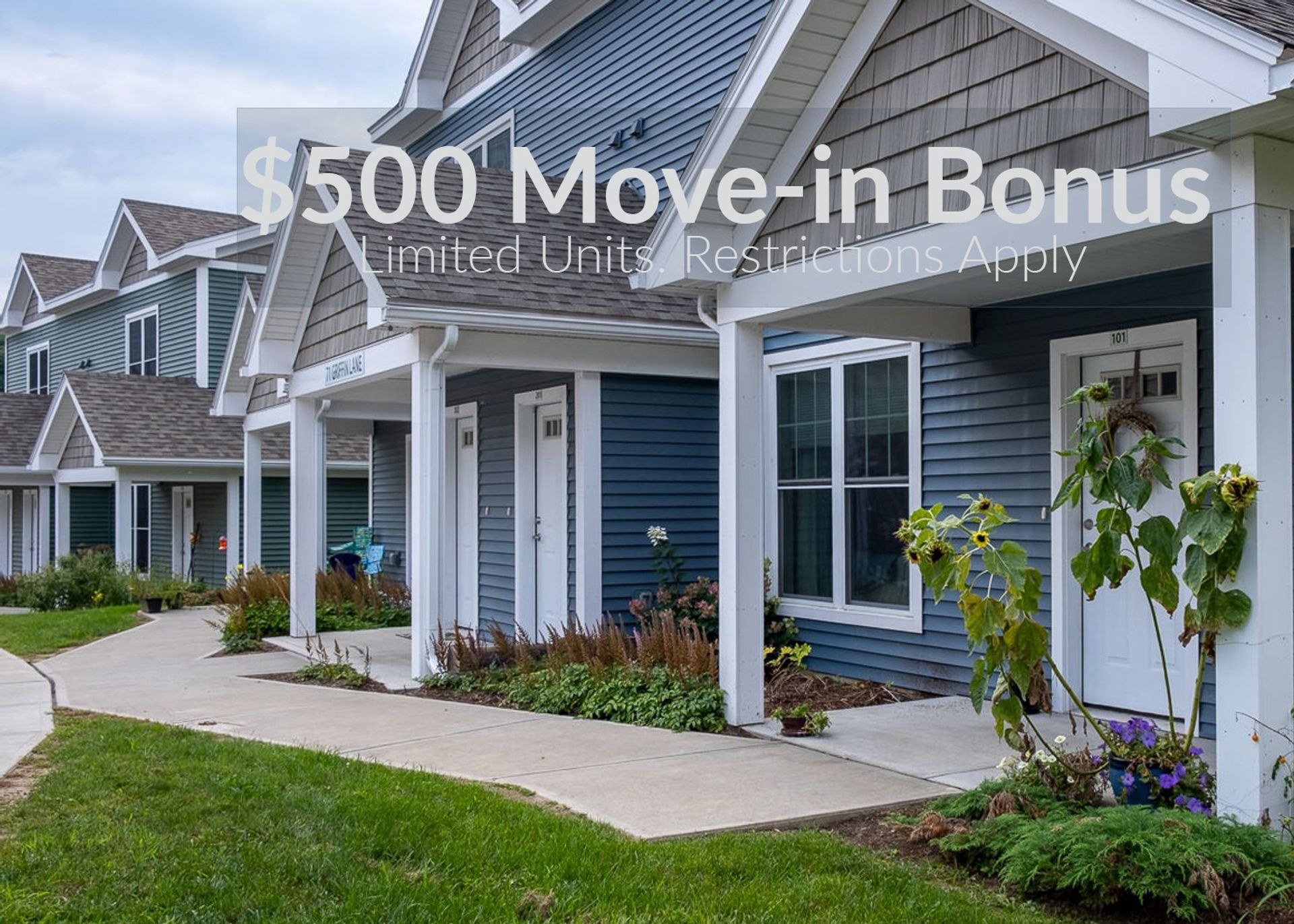 A $500 move-in bonus is available at select Gardenside Commons' homes when you move in by January 1, 2026.